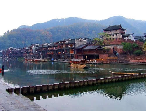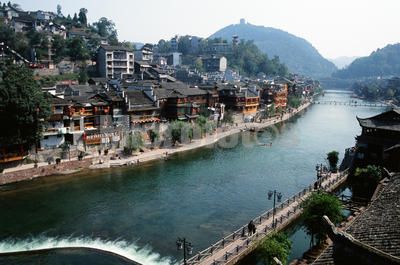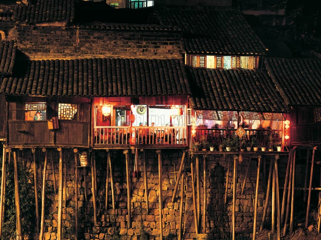 鳳凰古城始建于清康熙四十三年〔1704年〕,歷經(jīng)300多年的風(fēng)雨滄桑,古貌猶存?,F(xiàn)東門和北門古城樓尚在。城內(nèi)青石板街道,江邊木結(jié)構(gòu)吊腳樓,以及朝陽宮、古城博物館、楊家祠堂、沈從文故居、熊希齡故居、天王廟、大成殿、萬壽宮等建筑,無不具古城特色。古城以古街為中軸,連接無數(shù)小巷,溝通全城。古街是一條縱向隨勢成線、橫向交錯鋪砌的青石板路,自古以來便是熱鬧的集市,如今更加生機(jī)勃勃。鳳凰古城的標(biāo)志性建筑之一虹橋,原名臥虹橋,歷史悠久。鳳凰古城北門城樓本名“碧輝門”,采用紅砂條石筑砌,既有軍事防御作用,又有城市防洪功能,是古城一道堅固的屏障。鳳凰古街兩邊建筑飛檐斗拱,店鋪陳設(shè)著琳瑯滿目的民族工藝品,濃濃的古意古韻,透出古街深厚的民族文化底蘊(yùn)。