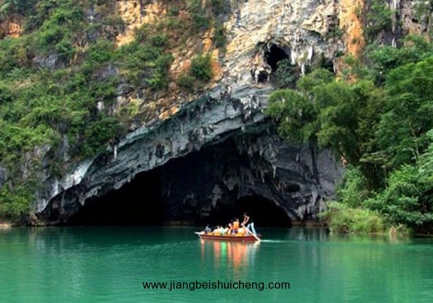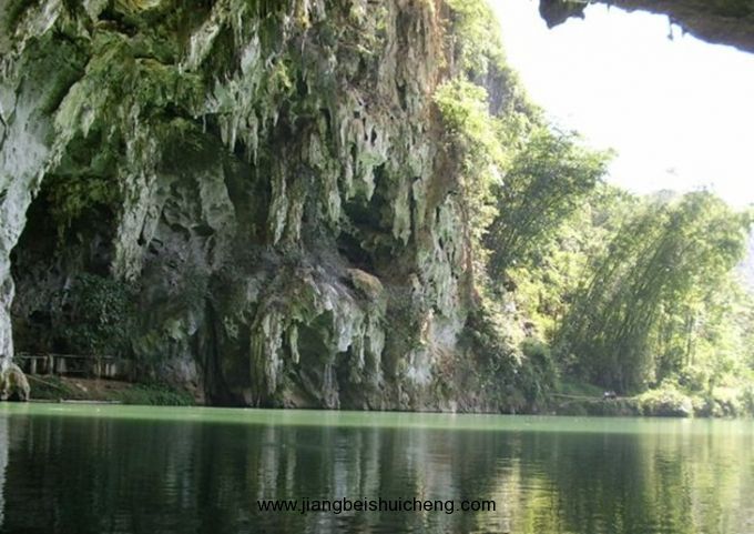 百鳥巖,位于廣西巴馬瑤族自治縣甲篆鄉(xiāng)烈屯西北面的漠齋山下,別名龍虎洞。因洞內(nèi)燕子棲集,蝙蝠掠飛,又名百鳥洞。盤陽河自吉屯白熊洞潛入山下,形成1000多米的伏流暗河后,在此洞流出。洞口寬50米,一石壁把洞口分成兩個略呈三角形的左右洞口。左側(cè)洞口寬40米,高16米,兩洞口內(nèi)側(cè)相通。洞深500米,蜿蜒曲折,直通與白熊洞一山之隔的拉類坳下的一個側(cè)洞口。洞中水平如鏡,深不可測,寬處約40米,窄處10米,從洞口行舟至300米轉(zhuǎn)折處,距水面30米處有一圓形天窗,山坳之光照到水面,猶如舞臺上的光束,色彩紛呈,近右側(cè)洞口處有沙灘,版權(quán)所有山東聊城聊之旅國際旅行社有限公司,轉(zhuǎn)載必究!可??恐鄞?。沙灘右側(cè)是一塊30多平方米的石臺,臺面深溝淺窩,坑坑坎坎,石臺一側(cè),洞壁雪白,可攀援其中。有石鷹、石柱、石幔、石觀音菩薩等,百態(tài)千姿,令人目不暇接。石臺的周圍有仙女梳妝、海螺石,石螺對面有石桌、石缸和石松果等。側(cè)面洞口外香椿林下野花艷目植被繁衍,把洞口點綴得幽靜雅致。洞中歧洞叉水道不可勝數(shù),密如蜂房,不知所向,整個洞仿佛一座裝飾華麗、景幻莫測的水下龍宮。其奇特的景象似桂林蘆笛巖,又因非乘舟不能游覽,游人贈予“水上蘆笛巖”的美譽。