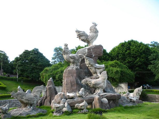 步入公園大門,一組大型的“金雞報曉”群雕呈現在眼前。群雕高達8米,19只形態(tài)各異、惟妙惟肖、生動逼真的雞站立在假山上。有的翹首引吭長鳴,有的雄風抖擻競相爭斗,有的母愛深深呵護著小雞……它們極好地體現了整座公園的主題和特色,成了公園的標志。版權所有,山東聊城聊之旅國際旅行社有限公司,轉載必究!群雕的背后屏風是一座高3米、長15米的弧形青石浮雕照壁,題為“原野牧歌”。壁上展現出一片古樸、淡雅的田園風光:山莊的疏籬茅舍,淙淙流水,茂密的林木點綴其間;轉運的水車和勞作的農夫重現遠逝的故事。整座浮雕宛如一首優(yōu)美的田園山水贊美詩,使人耳目一新,心胸開闊。