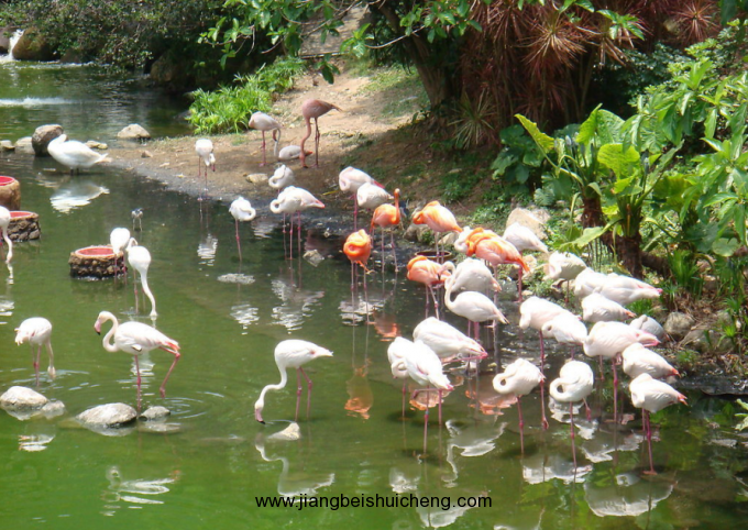 百鳥居設(shè)計獨特,一個由5條巨柱支撐的巨型不銹鋼絲網(wǎng),罩著面積達(dá)2500平方米的空間。內(nèi)分4區(qū):地棲鳥類區(qū)、森林鳥類區(qū)、叢林鳥類區(qū)及水禽鳥類區(qū),共有鳥3000余只。