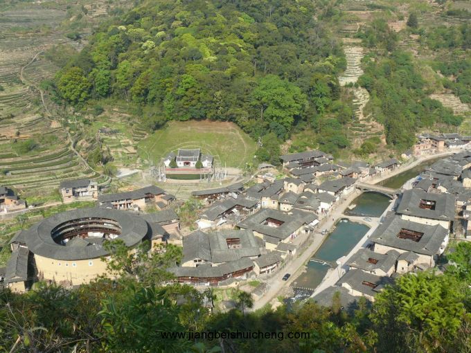 于是,張姓族人沿著溝谷兩旁,建造了一座座集居住、防御等功能于一體的圍合型土樓建筑。最早的土樓福興樓建于明代崇禎四年(1631年),為七世東崖公所建,以后又陸續(xù)建造42座土樓,有方形、圓形、圍裙形、曲尺形等,這些土樓沿山溪呈長(zhǎng)形擺布,高大雄渾,氣勢(shì)恢宏。版權(quán)所有,山東聊城聊之旅國(guó)際旅行社有限公司,轉(zhuǎn)載必究!清末后,由于地理環(huán)境所限,張姓族人在沿溪兩岸的空地上,又建起了一座座單院式土木、磚木結(jié)構(gòu)的吊角樓,形成大樓帶小樓、高低錯(cuò)落布局的奇妙景觀。樓前屋后鋪就的卵石小徑,被幾百年先人們的足跡磨得圓潤(rùn),細(xì)雨輕煙,閃出柔和的光澤。