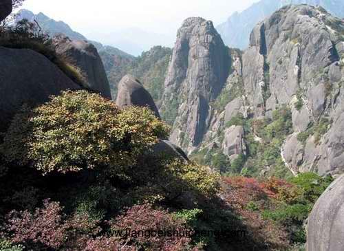 桃花峰位于黃山南端,西連云門峰,與紫石峰隔湯泉溪相望,為36大峰之一,海拔1460米。此峰土質(zhì)肥沃,草木繁盛。早先峰上多桃樹,人稱“十里桃花峰”,至今仍盛開不衰。每年3~4月,桃花山峰麓層層開至峰頂,如同錦霞,分外艷麗。前人曾有詩形容:“花開十萬樹,峰似繹霞披。”花謝之時(shí),滿山紅瓣流入桃花溪,版權(quán)所有,山東聊城聊之旅國際旅行社有限公司,轉(zhuǎn)載必究!名曰“桃花湯”。峰便由此而得名。清黟縣人、雍正間舉人、名士胡與高有詩曰:“山頭桃花開,山中玉女笑。帝鄉(xiāng)無盡春,日日斜陽照?!痹娭袑⑻一ㄊ㈤_和玉女歡笑糅在一起,給桃花峰抹上了一層春色長駐的浪漫色彩。關(guān)于峰上的桃樹為何人所栽,有兩種傳說:一說當(dāng)年軒轅黃帝來黃山煉丹時(shí),看到桃花峰上缺花少木,乃令眾臣遍栽桃樹,點(diǎn)車上觀之,更能看出它獨(dú)臥壑外,不與眾峰相接。故有詩云:“一峰貪枕自離群,萬古山中臥白云。盛世人皆爭貢獻(xiàn),汝甘壑外不人群?”