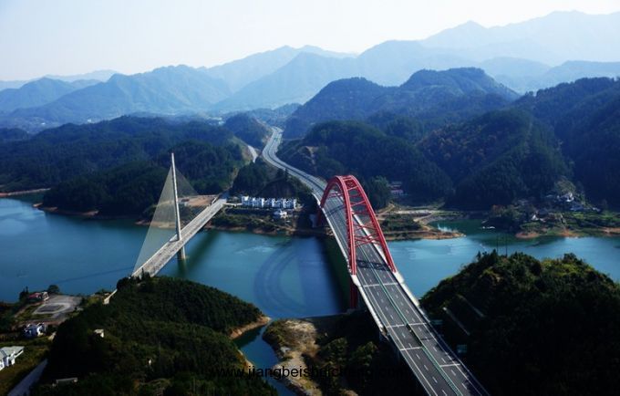 太平湖上,因?yàn)镚205國道和G3京臺(tái)高速跨湖的需要修建了2座大橋,位于G205國道上的為斜拉索大橋,而G3高速上大橋?yàn)橹谐刑峄@結(jié)構(gòu)。