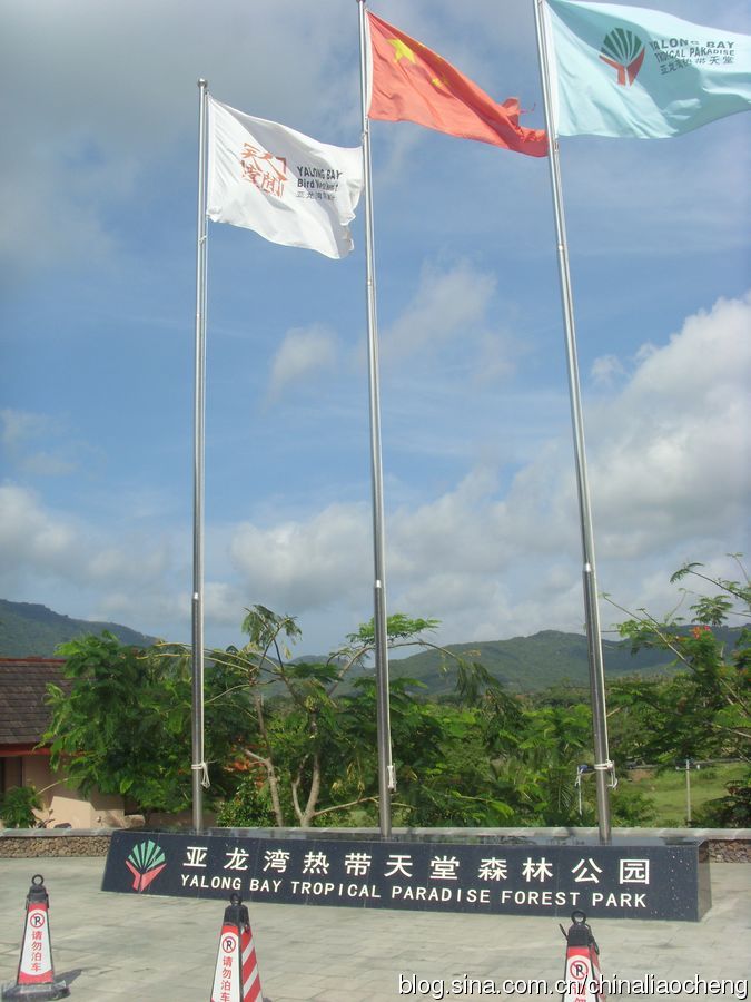 經(jīng)過一番跋涉,終于到達(dá)了亞龍灣熱帶天堂森林公園???,五星紅旗隨風(fēng)飄揚顯得多么奪目啊。