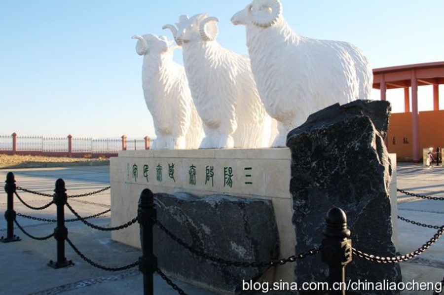 三只雕刻的美麗的羊,三陽開泰