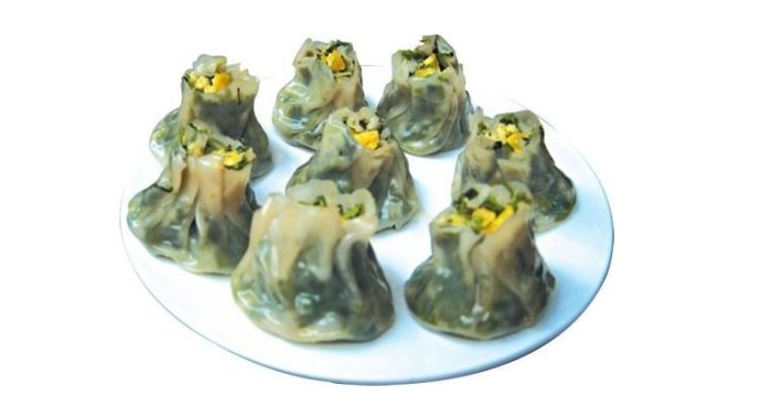 它的制作特點首先是選料精細,選用上等精制白面、桔餅、新鮮花生米、豌豆粉、葡萄干、肥豬肉、糖漬桂花、冰糖、白砂糖、細鹽等多種配料。其次是做工講究,將面粉反復揉和,一直揉到面團不沾盆、案,再把揉好的面團壓搓成條,切成小段,分別取一段用搟面杖飛快旋搟,邊搟邊灑淀粉,直到搟成荷葉似的包皮為止。餡均要細切成丁或搗碎,然后拌勻,捏成團狀包在面皮內,其三是造型美觀,包好的燒梅,形似石榴,做好以后,要用食用色素在上端“花瓣”上裝扮一番,宛如一叢紅梅,因此又稱石榴燒梅,寓含“榴結百子,梅呈五福”的吉祥之兆。