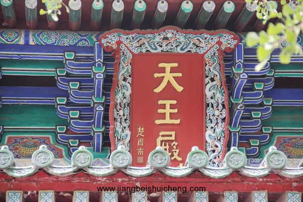 經(jīng)甬道過(guò)碑林后便是天王殿,三間重檐歇山頂?shù)钐?,外面有兩大金剛,?nèi)里則是四大天王像,威武雄壯。