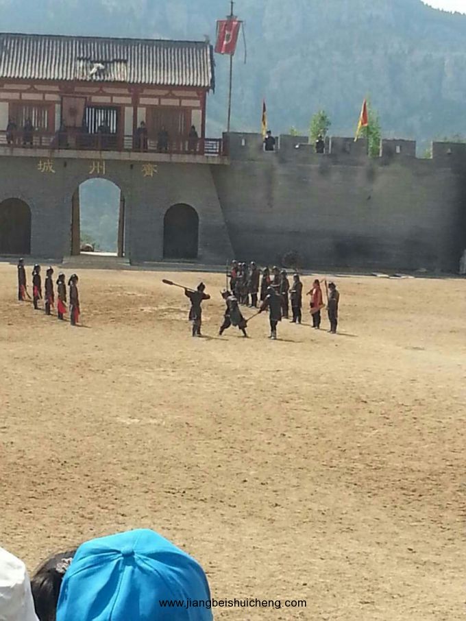 九頂塔影視劇場(chǎng)精心打造了五大實(shí)景劇。有紅色經(jīng)典參與劇《地道戰(zhàn)》、好萊塢場(chǎng)景劇《山洪暴發(fā)》、大型馬戰(zhàn)實(shí)景劇《好漢秦瓊》、《武松醉打蔣門神》、《劉三姐招親》,是國(guó)內(nèi)實(shí)景劇節(jié)目演出最多的景區(qū)。紅色經(jīng)典參與劇《地道戰(zhàn)》演員陣容龐大,具有較強(qiáng)的思想性、參與性、喜劇性和娛樂性,再現(xiàn)了當(dāng)年地道戰(zhàn)的戰(zhàn)爭(zhēng)場(chǎng)景,濃縮了地道戰(zhàn)的精彩片段,是一部難得的“牢記歷史、勿忘國(guó)恥”的生動(dòng)愛國(guó)主義教育題材。好萊塢場(chǎng)景劇《山洪暴發(fā)》,再現(xiàn)了暴風(fēng)驟雨、驚心動(dòng)魄的場(chǎng)面,氣勢(shì)磅礴,令人震撼,弘揚(yáng)了中國(guó)人民不被自然災(zāi)害所嚇倒和團(tuán)結(jié)一致、克服困難、重建家園的大無畏精神。