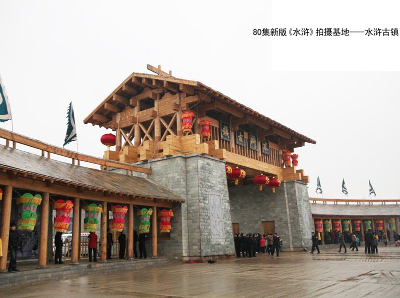 水滸古鎮(zhèn)是水滸影視基地的龍頭項(xiàng)目,位于東平湖東岸,東起255省道,西至東平湖湖岸線,南起大清河,北至老湖鎮(zhèn)朱橋村,總規(guī)劃面積約5平方公里,計(jì)劃總投資12億元,由東平縣水滸旅游開發(fā)有限公司投資興建。項(xiàng)目劃分為入口區(qū)、引景區(qū)、水滸影視城、水滸風(fēng)情展示區(qū)、中心碼頭服務(wù)區(qū)、景觀地產(chǎn)區(qū)六大功能區(qū) 。主要建設(shè)引景大道、水滸廣場、水滸影視城、替天行道坊、東京汴梁御道、聚星樓、伏魔殿等景點(diǎn)。