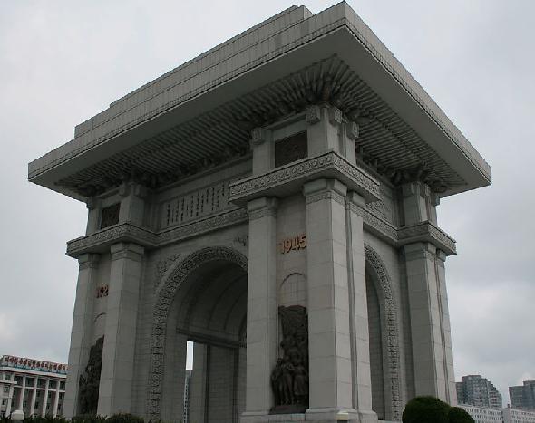 “別館”指的是金正日禮品館,它位于主館的對面,距主館約200米,建于八十年代,于1996年5月開始參觀。其建筑形式與“主館”相似,占地面積為2萬多平方米,50多個房間,館內(nèi)收藏著162個國家贈送的5萬多件禮品。