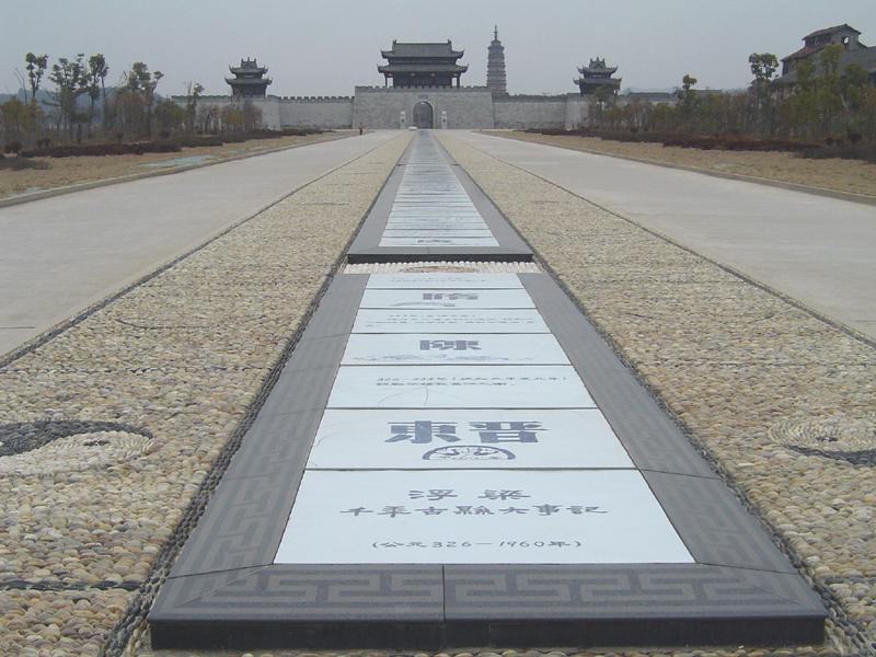 驅(qū)車來到浮梁古城前,首先映入游人眼簾的是一座灰色上書“浮梁”二字的石牌坊。走過牌坊,進入了浮梁古城風(fēng)景區(qū),這時,展現(xiàn)在面前的是一座長達(dá) 312米,以貼地瓷磚建造的浮梁歷史文化長廊,由216塊青花瓷板鋪就而成。這是一本史書,讓人們得以瀏覽浮梁千余年厚重的歷史文化。