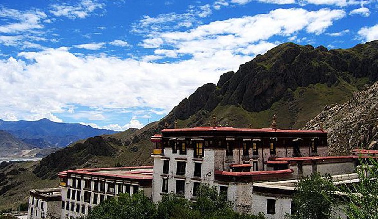 樓高3層,平頂宮堡式建筑,恢宏壯麗。殿內(nèi)供有藏傳佛教格魯派創(chuàng)始人宗喀巴大師等人佛像,陳設(shè)豪華,供器甚多。明崇禎十五年(1642年),和碩特蒙古首領(lǐng)固始汗支持達賴五世打敗藏巴汗后,建立了格魯派統(tǒng)治政權(quán),其政權(quán)機構(gòu)即設(shè)于此。直到清順治五年(1648年)布達拉宮白宮建成,達賴五世由該處移居布達拉宮,政權(quán)機構(gòu)也隨著轉(zhuǎn)移。后來,把格魯派統(tǒng)治的西藏地方政權(quán)統(tǒng)稱為甘丹頗章政權(quán)。