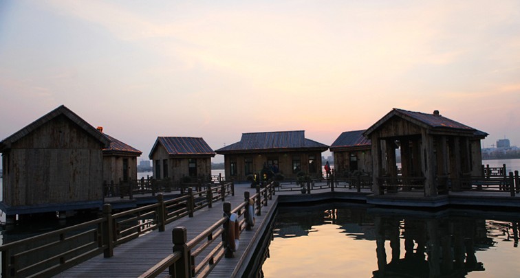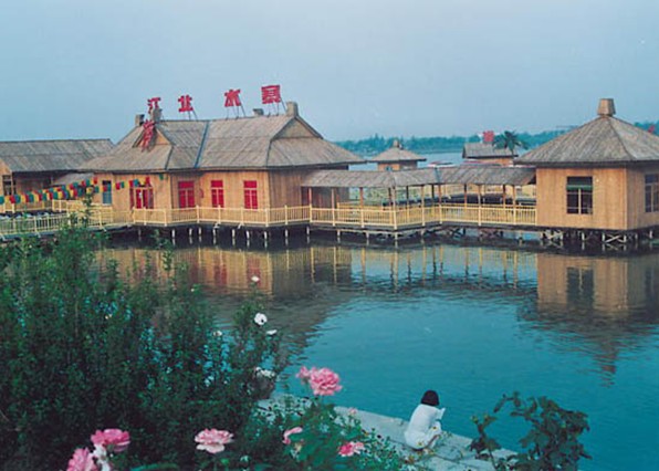 江北水寨位于聊城古城西側(cè),中國垂釣基地南面,整個(gè)水寨采用竹木結(jié)構(gòu),保留本色,全部建筑浮于湖水碧波之上,總建筑面積640余平方米。