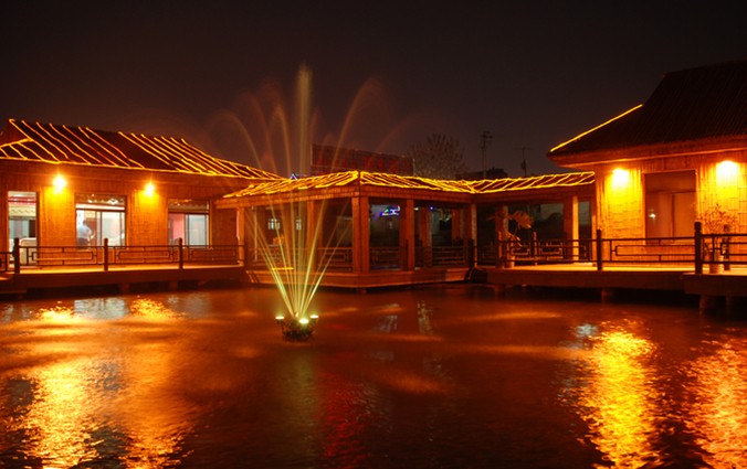 江北水寨系東昌湖綜合開發(fā)的重點(diǎn)項(xiàng)目之一,在借鑒眾多湖上竹寨建筑風(fēng)格和模式的基礎(chǔ)上,結(jié)合東昌湖自身特點(diǎn),大膽進(jìn)行了調(diào)整和改善,使其布局更加合理,形式更加活潑,功能更加齊全,風(fēng)格更具特色。版權(quán)所有山東聊城聊之旅國際旅行社有限公司,轉(zhuǎn)載必究!整個(gè)建筑由棧橋、回廊、亭臺軒榭組成。內(nèi)置可容70余人的餐會(huì)廳一座,另有10間餐廳、其中5間可供游人作為垂釣包廂,前后門貫通,面湖可放鉤垂釣,大廳與包廂之間棧橋相連,中間為一露天廣廳,可供游客輕歌漫舞。江北水寨樓臺軒榭,互相映襯,湖光城影,相映成趣,建筑風(fēng)格古樸典雅、錯(cuò)落有致,極具江南水鄉(xiāng)之風(fēng)彩。