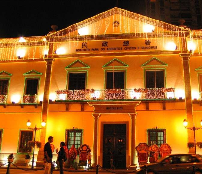 市政廳是澳門最有代表性的建筑,大門就在友誼大馬路上。內(nèi)部十分寧靜莊重,給人以與世隔絕的感覺,內(nèi)墻貼有葡萄牙的藍白瓷磚,花園內(nèi)繁花叢生。市政廳極為雄偉,現(xiàn)為澳門特區(qū)政府所在地。