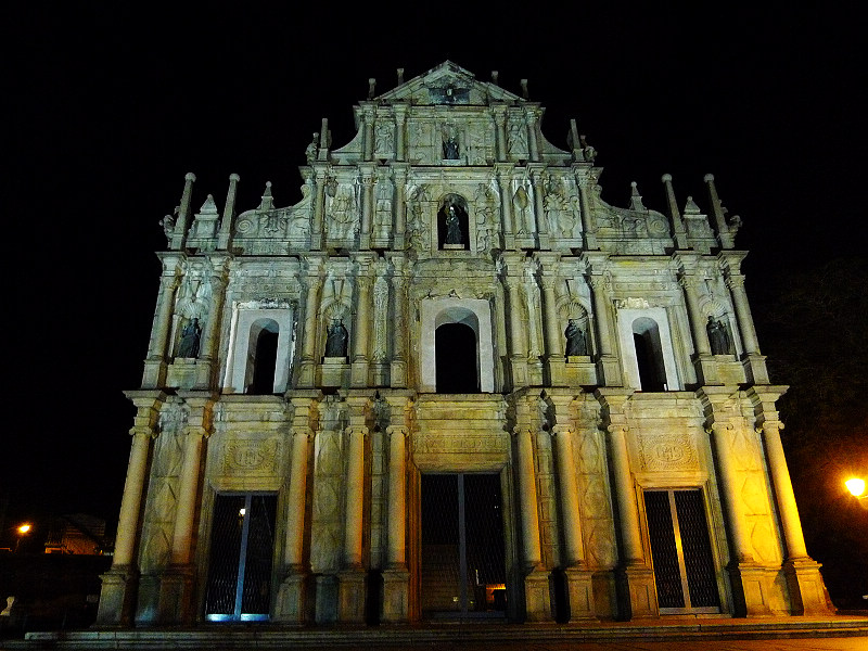 圣保羅教堂建成于1637年,整座教堂體現(xiàn)了歐洲文藝復(fù)興時期建筑風(fēng)格與東方建筑特色的結(jié)合,是當(dāng)時東方最大的天主教堂。1835年,圣保羅教堂被一場大火燒毀,僅殘存了現(xiàn)在的前壁部分。因為它的形狀與中國傳統(tǒng)牌坊相似,所以取名為“大三巴碑坊”。