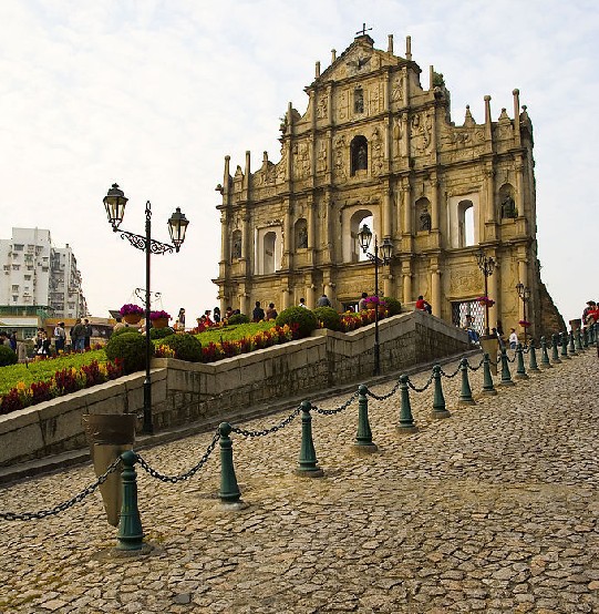 澳門大三巴即圣保羅教堂的遺跡,位于澳門大巴街附近的小山丘上。 圣保羅教堂建成于1637年,整座教堂體現(xiàn)了歐洲文藝復(fù)興時期建筑風(fēng)格與東方建筑特色的結(jié)合,是當(dāng)時東方最大的天主教堂。1835年,圣保羅教堂被一場大火燒毀,僅殘存了現(xiàn)在的前壁部分。因為它的形狀與中國傳統(tǒng)牌坊相似,所以取名為“大三巴碑坊”。 版權(quán)所有山東聊城聊之旅國際旅行社有限公司,轉(zhuǎn)載必究! 精美絕倫的藝術(shù)雕刻,將大三巴牌坊裝飾得古樸典雅。無論是牌坊頂端高聳的十字架,還是銅鴿下面的圣嬰雕像和被天使、鮮花環(huán)繞的圣母塑像,都充滿著濃郁的宗教氣氛,給人以美的享受。 現(xiàn)在,大三巴牌坊已經(jīng)成為澳門的象征之一,也是游客澳門之行的必到之地。 看過大三巴碑坊,游客不妨到與之相鄰的古炮臺城堡。登臨氣勢雄偉、酷似歐洲古堡的古炮臺城堡,人們不僅能夠看到十余門巨型鑄鐵古炮,發(fā)思古之幽情,還可以飽覽澳門全景呢。 大三巴牌坊是“澳門八景”之一,位于炮臺山下,左鄰澳門博物館和大炮臺名勝,下連68級石階,極顯巍峨壯觀。大三巴牌坊為圣保祿教堂遺址(“三巴”即“圣保祿”的粵語音譯)。該教堂始建于1637年,先后經(jīng)歷3次大火,屢焚屢建,直至1835年10月26日,最后一場大火將其燒得只剩下教堂正門大墻,此墻因類似中國傳統(tǒng)牌坊而得名“大三巴牌坊”。牌坊壁上雕塑精美,其中的中國石獅頭,是西方宗教藝術(shù)與中國傳統(tǒng)石雕藝術(shù)相結(jié)合的精品。