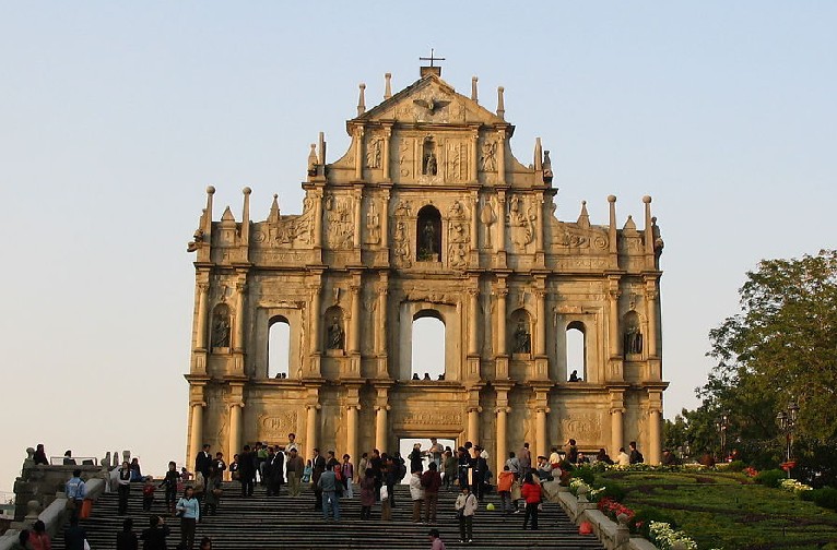 大三巴牌坊(Ruins of St.Paul),是澳門最具代表性的名勝古跡,為1580年竣工的圣保祿大教堂的前壁,此教堂糅合了歐洲文藝復(fù)興時期與東方建筑的風(fēng)格而成,體現(xiàn)出東西藝術(shù)的交融。雕刻精細,巍峨壯觀。