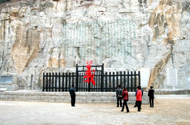 據(jù)新華網(wǎng)2002-04-21的報道,《水泊梁山記》大型摩崖石刻落成典禮是4月20日舉行的,儀式上,范曾本人介紹了《水泊梁山記》的構(gòu)思成因,央視著名節(jié)目主持人趙忠祥王剛對其進行了朗誦。