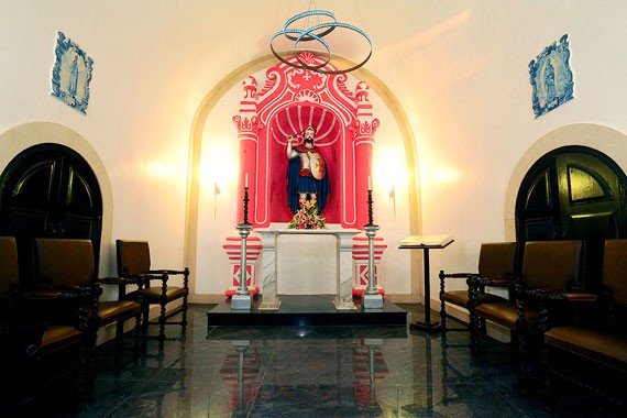 這座精致的小堂于1629年興建,于1740年重建于媽閣炮臺上, 即在澳門這個小城的尾端。當(dāng)時,小教堂巳是一所葡式旅館建筑物的一部份,而旅館則建于炮臺的地基上,在這座精致的小教堂擺放圣人雕像及花地瑪圣母,伊莎貝皇后的瓷磚圖像。