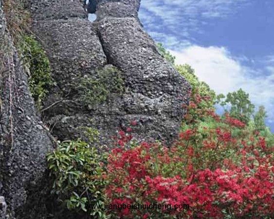 在羅漫山上生長(zhǎng)著許多天然杜鵑樹(shù)(映山紅),每年春分前后為盛花期,到時(shí)漫山遍野鮮紅一片,十分宏偉壯觀。