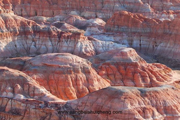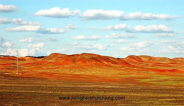 將軍戈壁上一處紅色丘陵區(qū),由數百個大小不等的紅色山包組成,總面積大約10平方公里。山體的高度多在20—30米之間,頂部呈平滑圓弧狀,周圍坡度平緩,山包之的洼地也是一片火紅。這些紅色丘陵綿延起伏,形成非常壯觀的地文景觀?;馃降纳襟w由磚紅色和桔黃色的巖石構成,色彩艷麗,石質堅硬,為侏羅系地質構造。版權所有,山東聊城聊之旅國際旅行有限公司轉載必究!陽光下的火燒山真像一片火海,那些起伏的紅色山頭就像升騰的火焰,你的第一感覺就是仿佛來到了西游記里的火焰山?;馃降膸r石原為泥巖,由于地下的煤層自燃,讓其燒烤成現在的模樣,因而地質表面到處散落著被熔變的巖石。這些巖石不但質地堅硬,而且色彩鮮艷,形狀奇特,具有一定的觀賞價值。由于火燒山油田的開發(fā),火燒山逐漸被人們所熟知,慕名而來的游客日漸增多,火燒山將成為重要的旅游勝地。