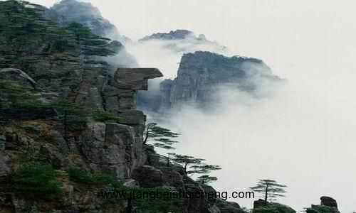 在石筍與仙人峰間的溝壑中,有一塊巨石,下部似一蒲團,上部似一人直立。從玉屏樓(或天都峰)向北遠眺,但見他身上衣帶隨風而起,流灑飄逸.四周云海翻騰時,似人立蒲團浮在云上,狀若飄洋過海,版權所有,山東聊城聊之旅國際旅行社有限公司,轉載必究!故被喻為傳說中的“仙人以海游蓬萊”。今人有詩記日:“浮云涌處山環(huán)水,頑石乘風浪里飄。遙望天涯何處是,不如黃??辞锍??!?
