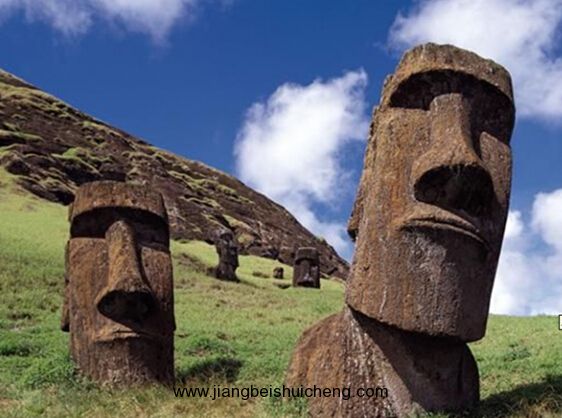 智利的復(fù)活節(jié)島位于太平洋東南部,以神秘巨像名聞遐邇。島上有600多尊面對(duì)大海的古代巨大半身石雕像。19 96年2月,該島被聯(lián)合國(guó)教科文組織宣布為世界文化遺產(chǎn)。