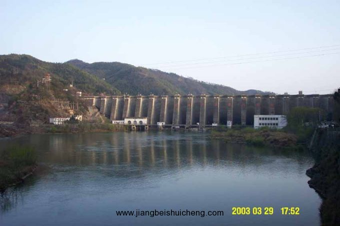 樞紐工程由攔河壩、溢洪道、輸水鋼管和發(fā)電廠四個(gè)部分組成。攔河列為鋼筋混凝土連拱壩,東岸端為重力壩,西岸端為平板壩,全長半5洼拱壩段長 413. 5米,有20個(gè)垛和21個(gè)拱組成。1983年大壩加高1.5米,并加做防浪墻高1.1米后,壩頂高程由原來128.46米增至129.96米;防浪墻頂高程由原來129.56米增至131.06米;最大壩高由原來74.4米,增至75.9米。溢洪道位于東岸山凹,開敞式,1984年由原來5孔擴(kuò)建為6孔,堰頂凈寬63.6米,孔寬10.6米,最大泄量7540立方米/秒。版權(quán)所有,山東聊城聊之旅國際旅行有限公司轉(zhuǎn)載必究!泄洪鋼管3道,管徑l.975米,分別布設(shè)在13,14,15號(hào)垛內(nèi),最大泄量225立方米/秒。發(fā)電引水鋼管6道,供新老兩座電。廠輸水發(fā)電,合計(jì)發(fā)電流量98.25立方米/秒。