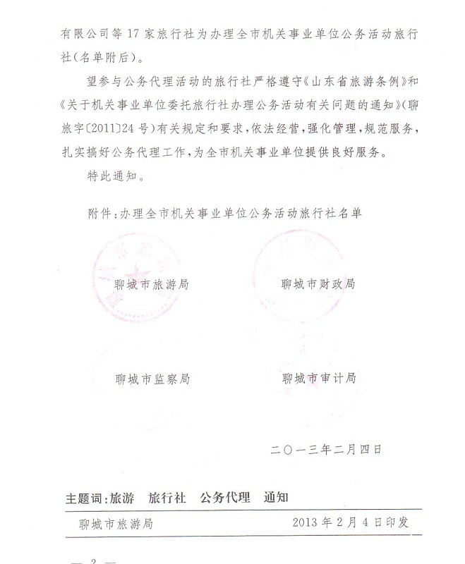 山東聊城聊之旅國(guó)際旅行社有限公司