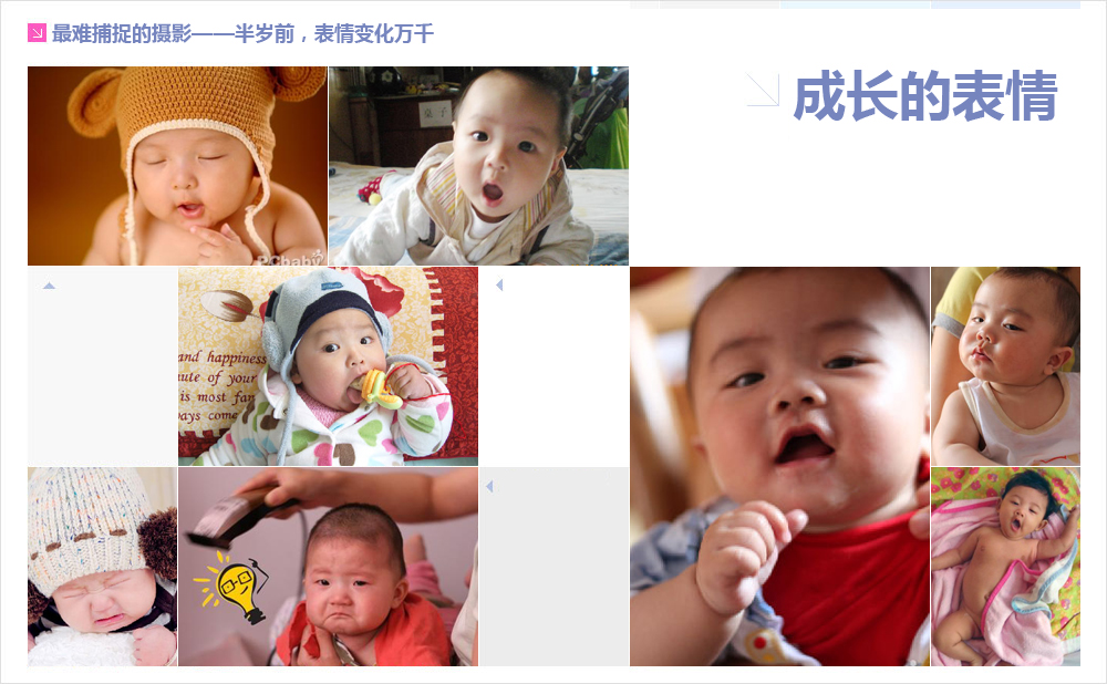 1、決定拍攝間隔:每周甚至每日一張當(dāng)然很有趣,但這涉及太多工作,一年要拍攝52張指定的照片甚至要365張,并非易事。由零到兩歲,每月一張看來間隔上比較理想,看到分別,又不至于太疏落。
