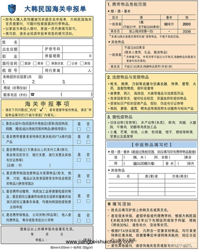 海關(guān):每位旅客可免稅隨身攜帶烈酒1000毫升(一瓶),香煙200支(一條),香水2英兩?;貒?guó)入境時(shí),請(qǐng)勿攜帶違禁物品。