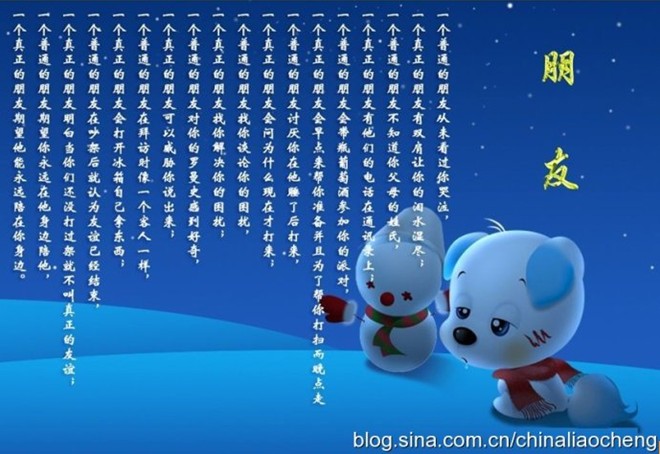 當歲月積下的塵土;當所親身經(jīng)歷的,那些難忘的日子涌上心頭;當你在編織美好未來時;當你受到感情沖擊時;當你在前行時刻遭到打擊時;當你在享受幸福時。知友無時無刻不在關心和關注你,這種關注有時候是無形的,可見這種友情是時間最珍貴的無價之寶。為這樣的友情而贊美,而感動、而祝福……