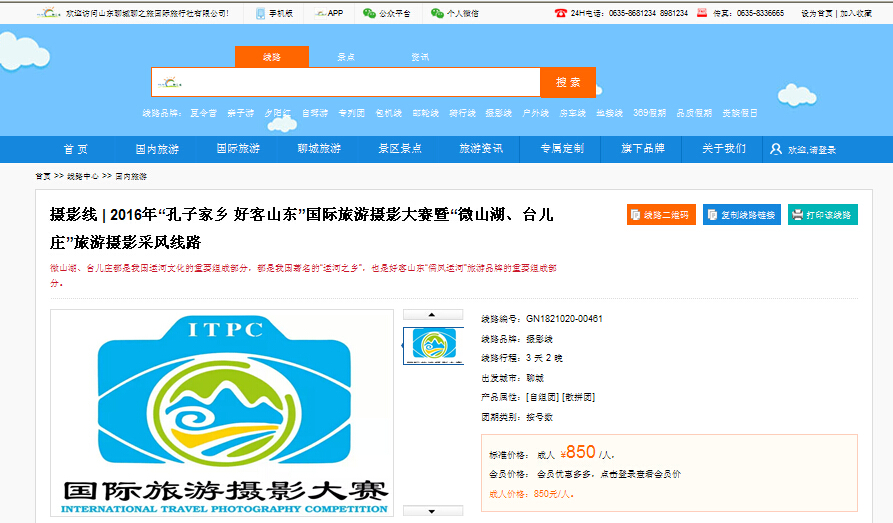 山東聊城聊之旅國(guó)際旅行社有限公司發(fā)布的攝影旅游專項(xiàng)產(chǎn)品。