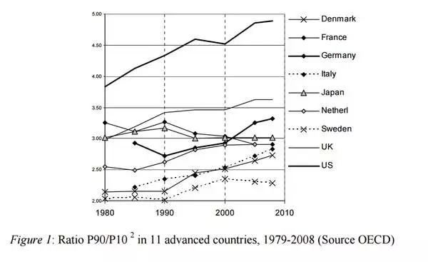 最近30年,英美等發(fā)達國家的高收入群體和低收入群體收入都有所增長,但是高收入群體(政企管理者、金融從業(yè)者、IT從業(yè)者)的收入增長更快。