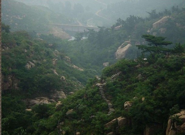 “高峽出平湖”,天綠湖有山東第一高湖之稱。天上人間、水天一色,蔚為壯觀、妙不可言,兩邊青山峻嶺,一座連一座,臨湖的一面就如刀削般,更為險峻。