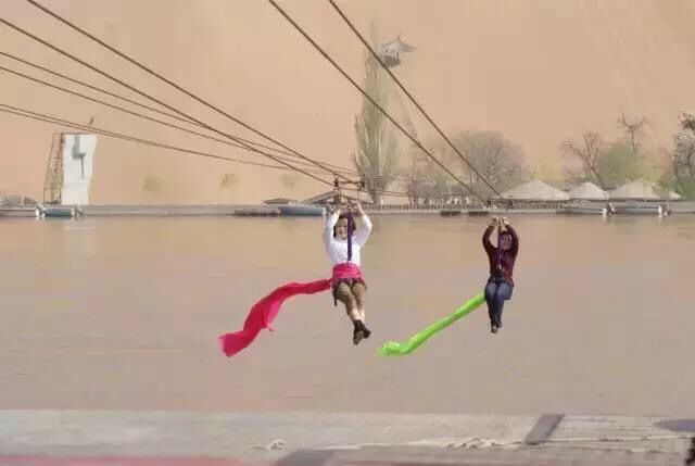 “飛黃騰達(dá)”滑索跨越黃河最長距離達(dá)到了955.7米,是目前最長的跨黃河索道?;柙邳S河之上,不僅讓人驚呼過癮!