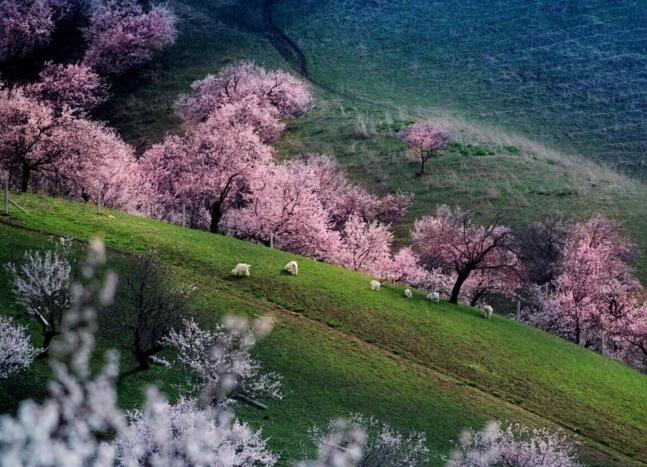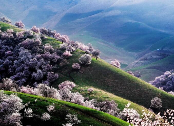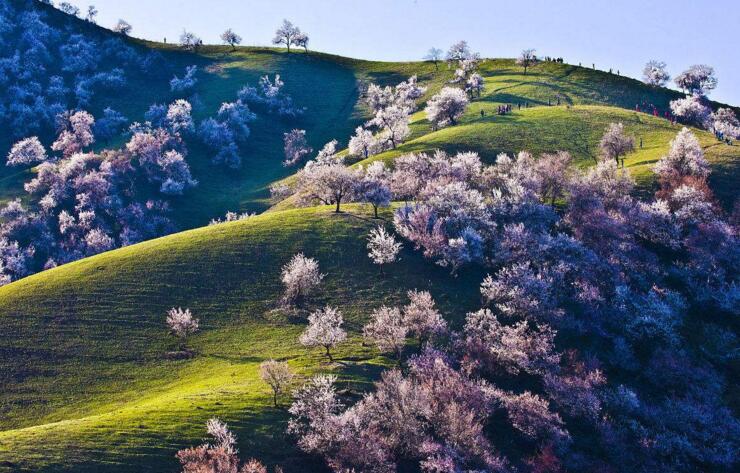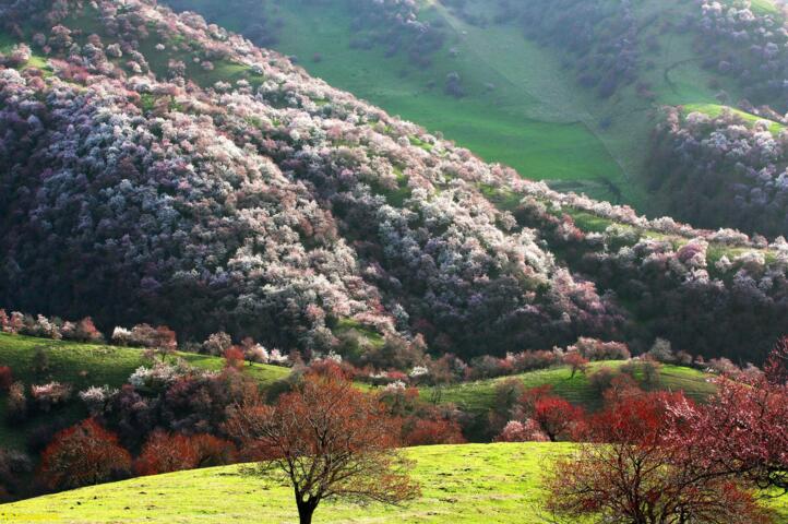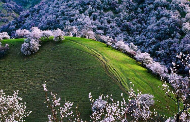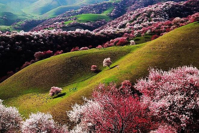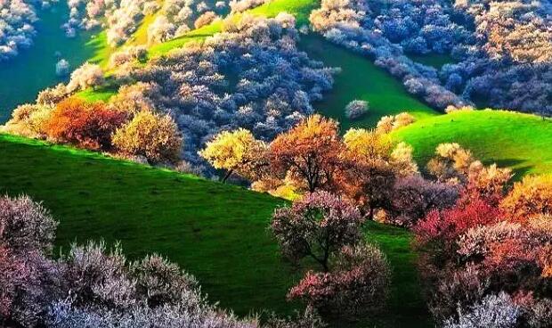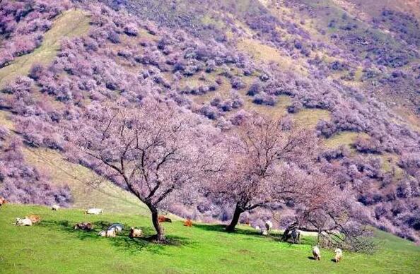 早餐后乘車前往參觀【吐爾根杏花溝】。(賞花時間根據(jù)當?shù)氐臍夂蚝吞鞖鈼l件決定,敬請諒解)每年四月份起,伊犁河谷開始進入一個美麗浪漫的季節(jié),山上、草原上的果花、草花次第盛開,美不勝收!最先盛開的就是野杏花。那個季節(jié)野杏花綿延十幾公里,粉紅的、雪白的杏花把一個個山頭妝扮起來,牛羊似珍珠灑落在花林間、草坡上。最震撼是這種自然、原生態(tài)的壯美,一個花海的世界、一個迷人的仙境!抵達新源用晚餐,晚餐后入住酒店。