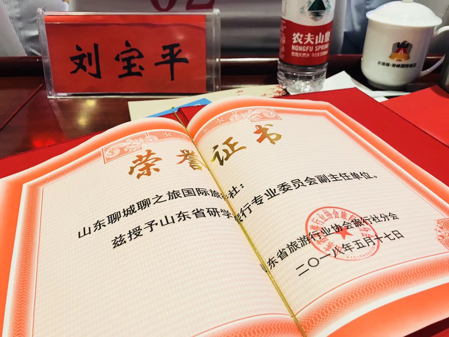 5月19日,劉寶平受邀參加山東省旅行社行業(yè)年會(huì),并在會(huì)議中代表公司領(lǐng)取表彰。