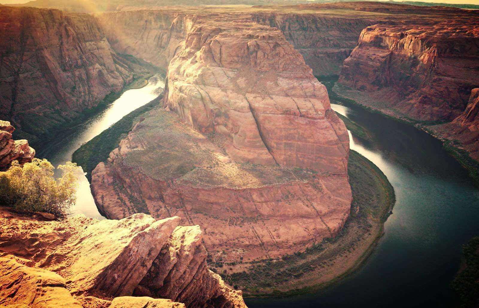 馬蹄灣(Horseshoe Bend)是科羅拉多河在亞利桑那州境內(nèi)的一截U形河道,也是格蘭峽谷其中一小段,由于河灣環(huán)繞的巨巖形似馬蹄,故名“馬蹄灣”。也有人叫它科羅拉多河的Ω大拐彎,河水是誘人的深綠色,映著紅山,真是壯觀的美。晚上入住酒店休息。