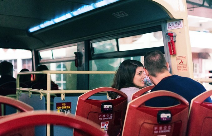 等了30分鐘的代價是,可以坐在big bus樓上第一排,遮風擋雨還能偷拍。香港,隨處可見的異域風情。