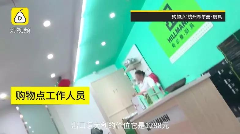 同樣的套路,發(fā)生在杭州希爾曼廚具購物店中,導游以五折左右價格吸引游客購買。