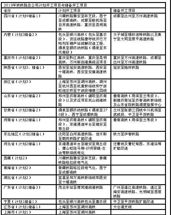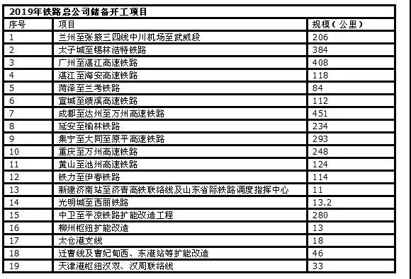表二:鐵路總公司2019年儲(chǔ)備開工項(xiàng)目