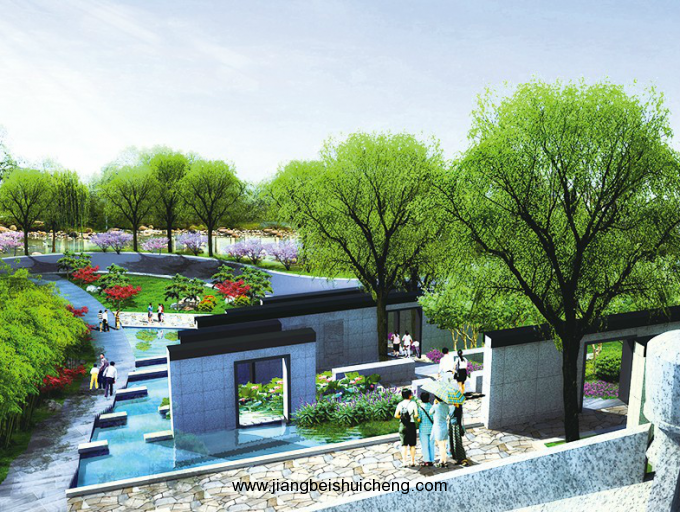 聊城眾多的河流,美麗的虎撲,形成了城中有水、水中游城、城水一體、交相輝映,不同景觀要素融為一體的獨特城市格局,黃河文化和運河文化在此交匯相融;中原龍山文化與典型龍山文并存;漕運文化、水利文化、文學(xué)藝術(shù)文化、民俗文化等在這里都有體現(xiàn),人文資源獨具特色。園區(qū)將在入口景區(qū)用一個寧靜的睡眠和對景景墻開場,象征聊城。中區(qū)由五道疊水和融入水中墻體構(gòu)成江北水城的景觀印象。園區(qū)東側(cè)最高處的上崗上,植富于野趣的樹林,形成寫意的景陽岡景觀,林中置亭,名打虎亭。在這里可以遠(yuǎn)眺層巒疊嶂的百果山森林公園景觀,可賞自然與人工的園博園和融園景觀。