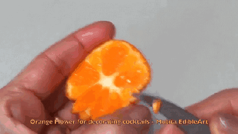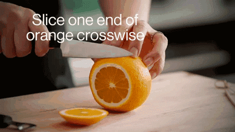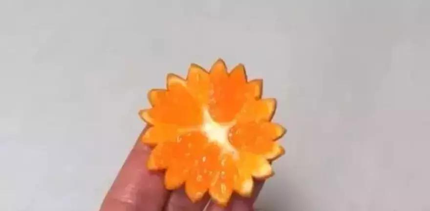 2.把橙片連接的中間位置,沿圓心切一個(gè)口