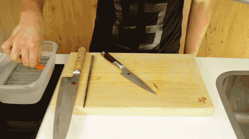 1.黃瓜取段,從黃瓜兩側(cè)分別小心切入