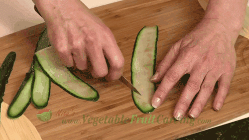 3.之后將黃瓜片稍微向上推移,如此往復(fù)。