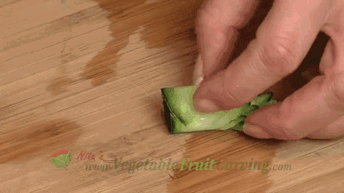 2.切下一片完整的樹(shù)葉黃瓜片