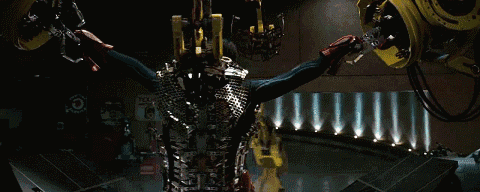 為了逃出生天,托尼用一堆破爛零件,打造出了一副鋼鐵盔甲…
