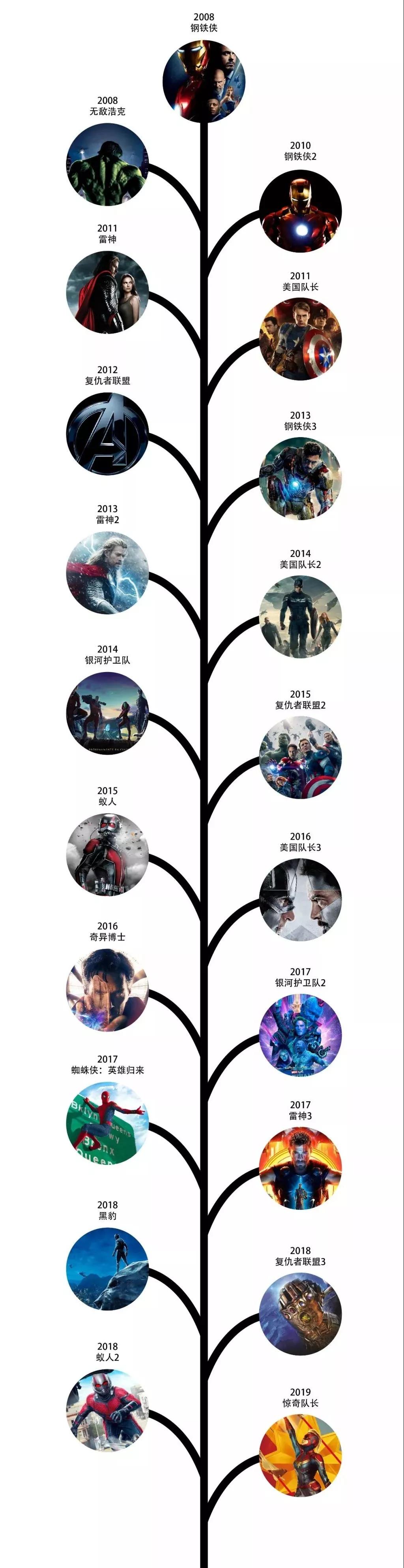 第三階段:從2016年開始,到2019年結(jié)束:美國隊長3、奇異博士、銀河護(hù)衛(wèi)隊2、蜘蛛俠、雷神3、黑豹、復(fù)仇者聯(lián)盟3、蟻人2、驚奇隊長、復(fù)仇者聯(lián)盟4。